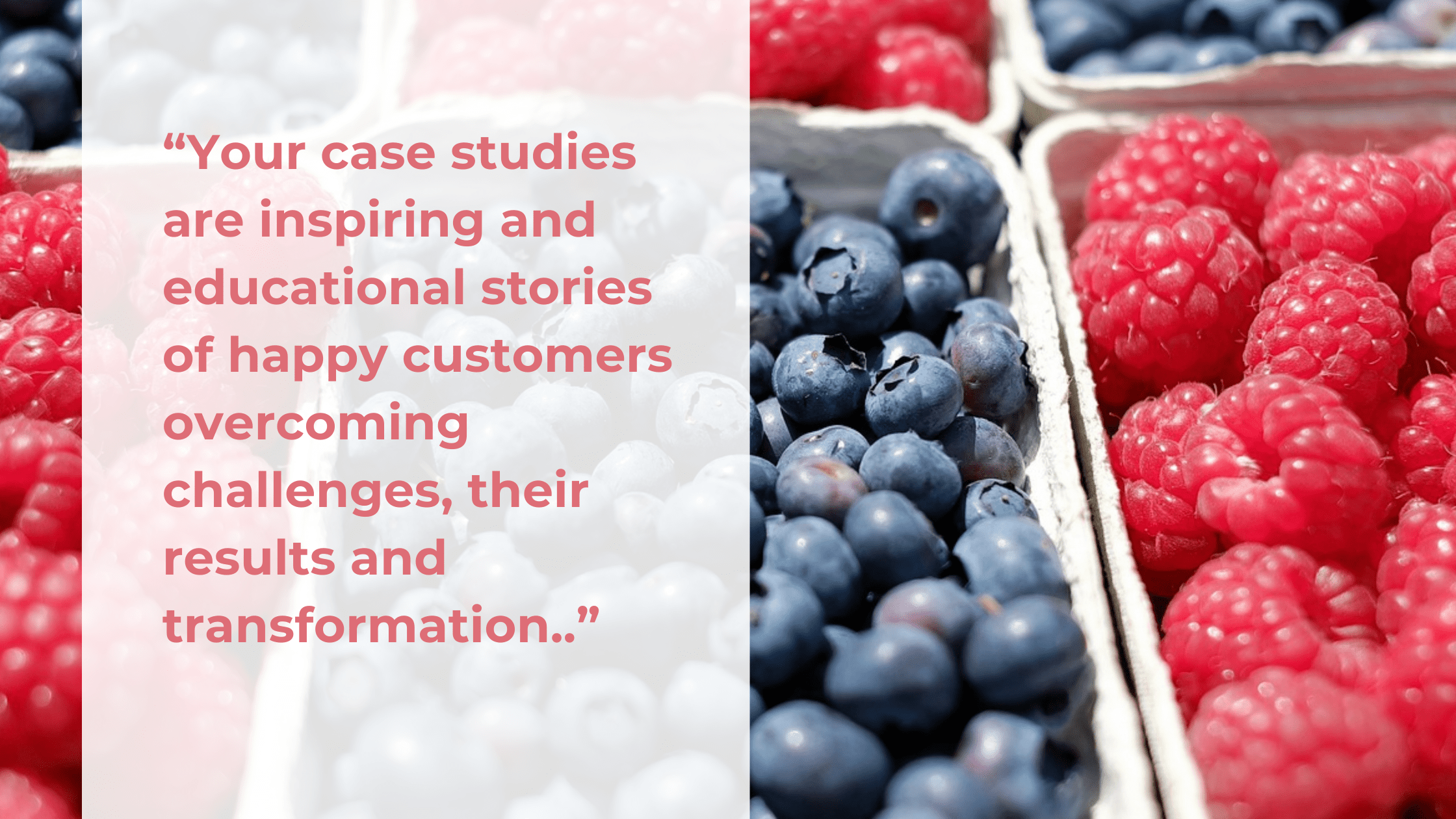 Your case studies are inspiring and educational stories of happy customers overcoming challenges, their results and transformation.